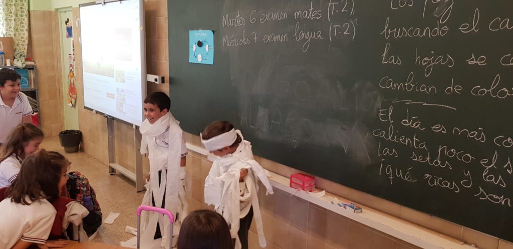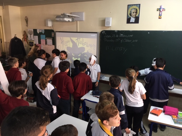 Los alumnos de Educación Primaria disfrutaron mucho con la actividad que prepararon las auxiliares de conversación, Priscilla y Erin. Además hemos tenido la oportunidad de trabajar el vocabulario relacionado con la celebración: skeleton, mummy, pumpkin, vampire,…