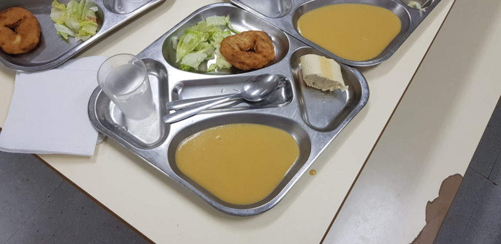 Por lo demás, este mediodía hemos recuperado fuerzas de nuestra ajetreada mañana con unas lentejas muy ricas en hierro, unas riquísimas albóndigas y un plátano.