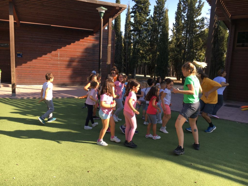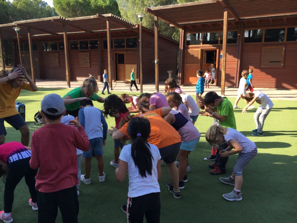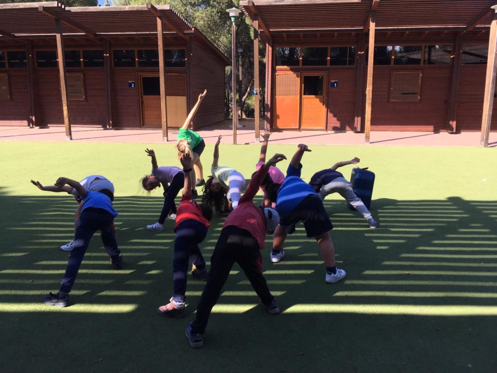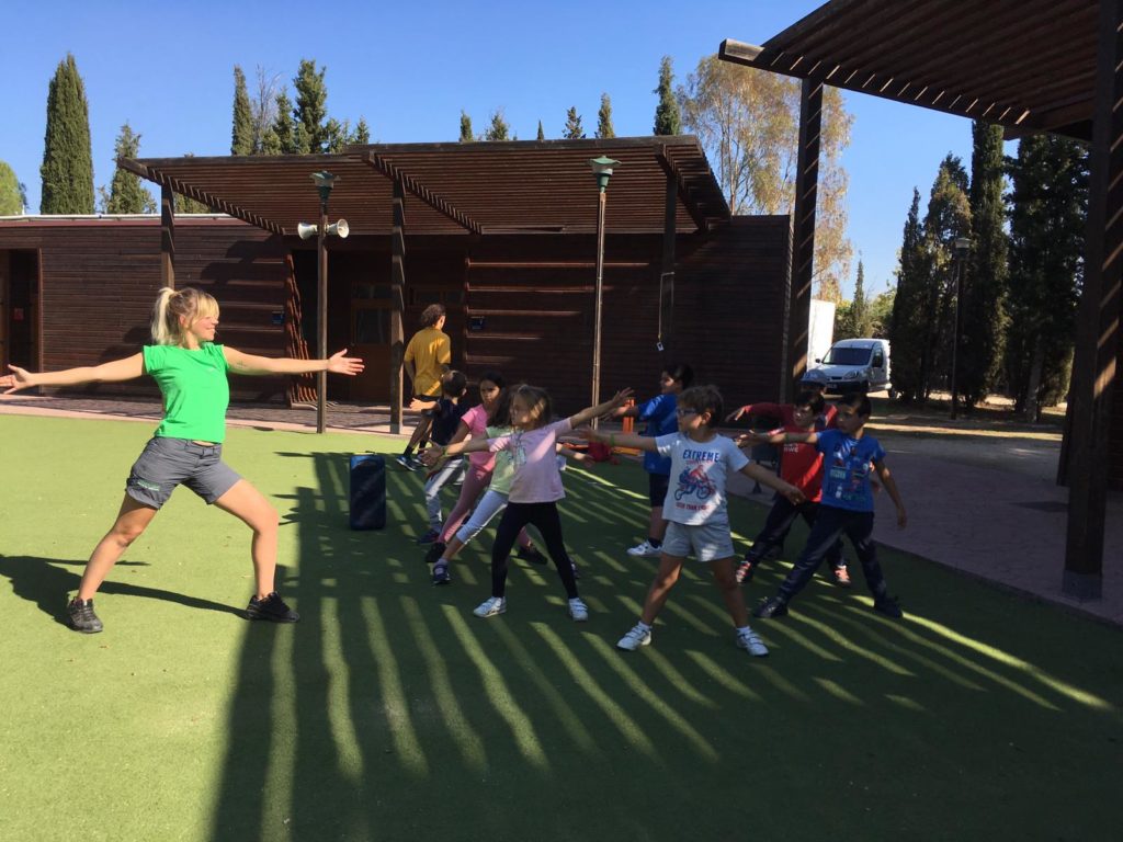 Después de comer hemos tenido un ratito de tiempo libre para lavarnos los dientes y jugar. Luego hemos empezado nuestras actividades de tarde: escalada, yoga y fitness y algunos «english games».