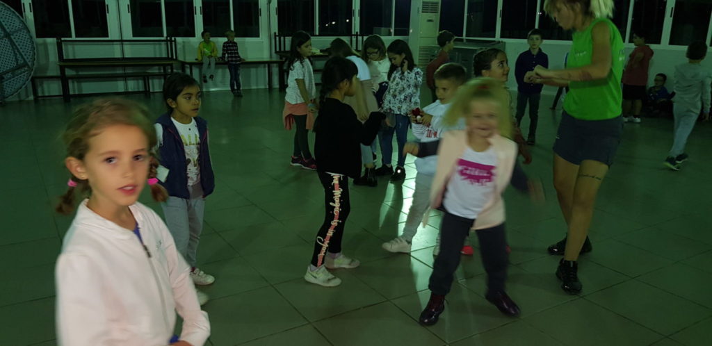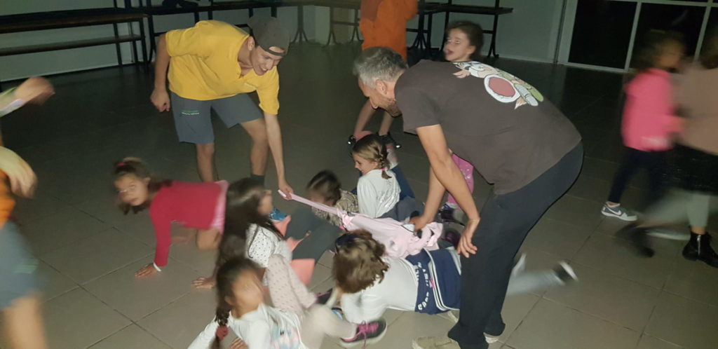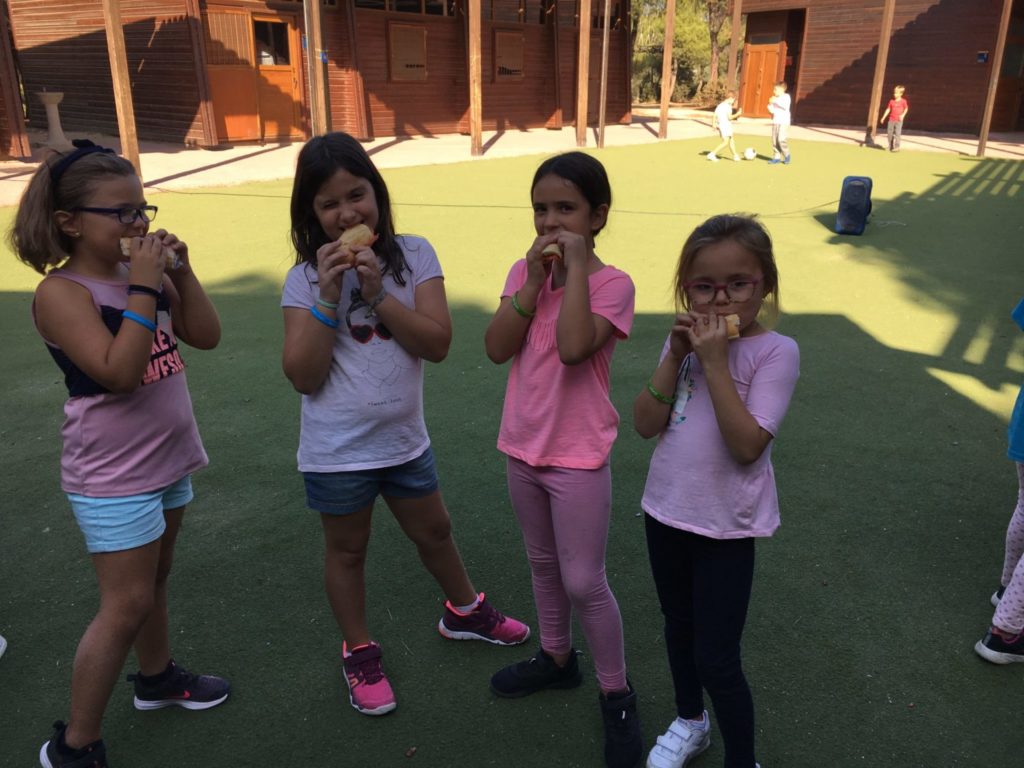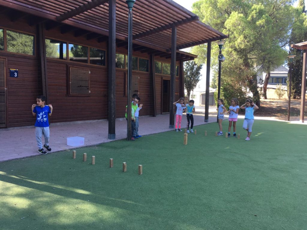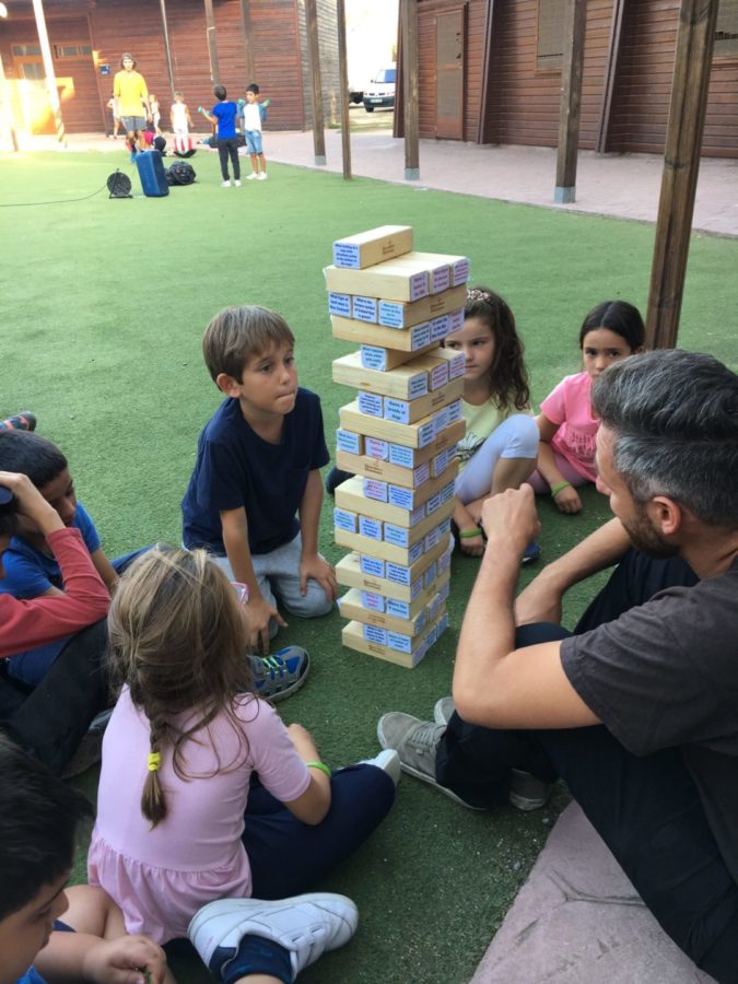 Después de comer hemos tenido un ratito de tiempo libre para lavarnos los dientes y jugar. Luego hemos empezado nuestras actividades de tarde: escalada, yoga y fitness y algunos «english games».